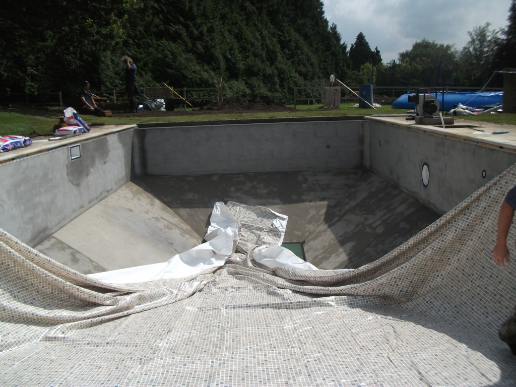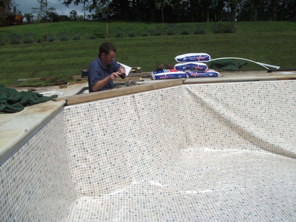 The most economic way to install an “in ground” pool is to fit a pre-tailored vinyl liner into the pool shell to provide water tightness and the decorative finish.